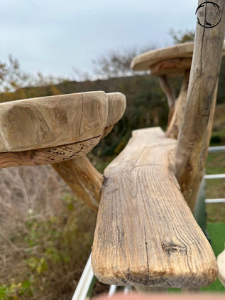 【こだわりポイント】: 窓の外を見るのが好きなラガマフィンちゃん2匹のために、窓の高さに渡り廊下を設置してほしいというご希望で注文いただきました。ラガマフィンの運動量やジャンプ力を考えると台座の間隔は狭い方がよいと考え、20-30cm間隔で登れるような設計をご提案しました。また幹については、細みでうねりのあるものを選定し、繊細で美しい見た目となりました。また、ラガマフィン2匹で仲良くご飯が食べられるダブルタイプの流木フードボウルも追加いただきました。
